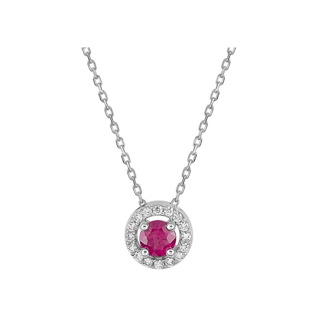 Collier en or blanc, rubis et oxyde de zirconium