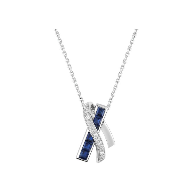 Pendentif en or blanc, saphir et diamant 0.02ct