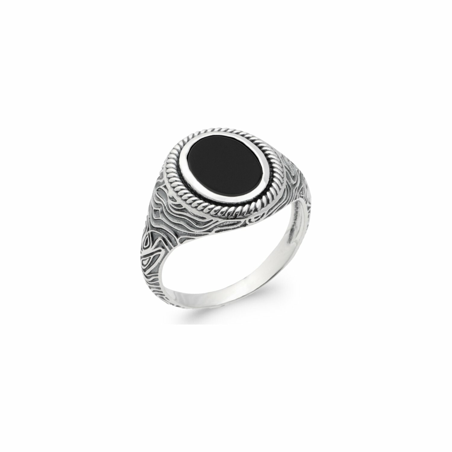 Bague en argent et agate noire