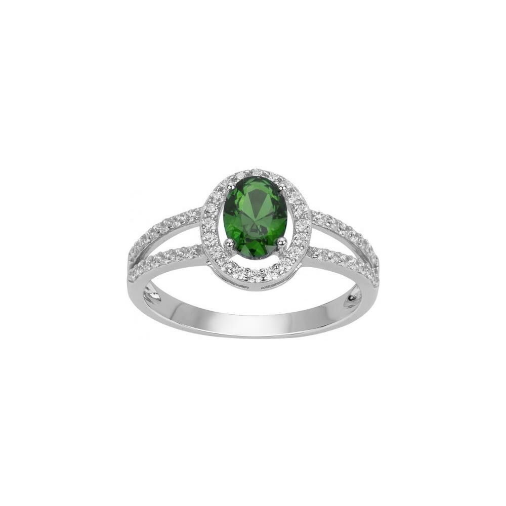 Bague en argent et oxyde de zirconium blanc et vert