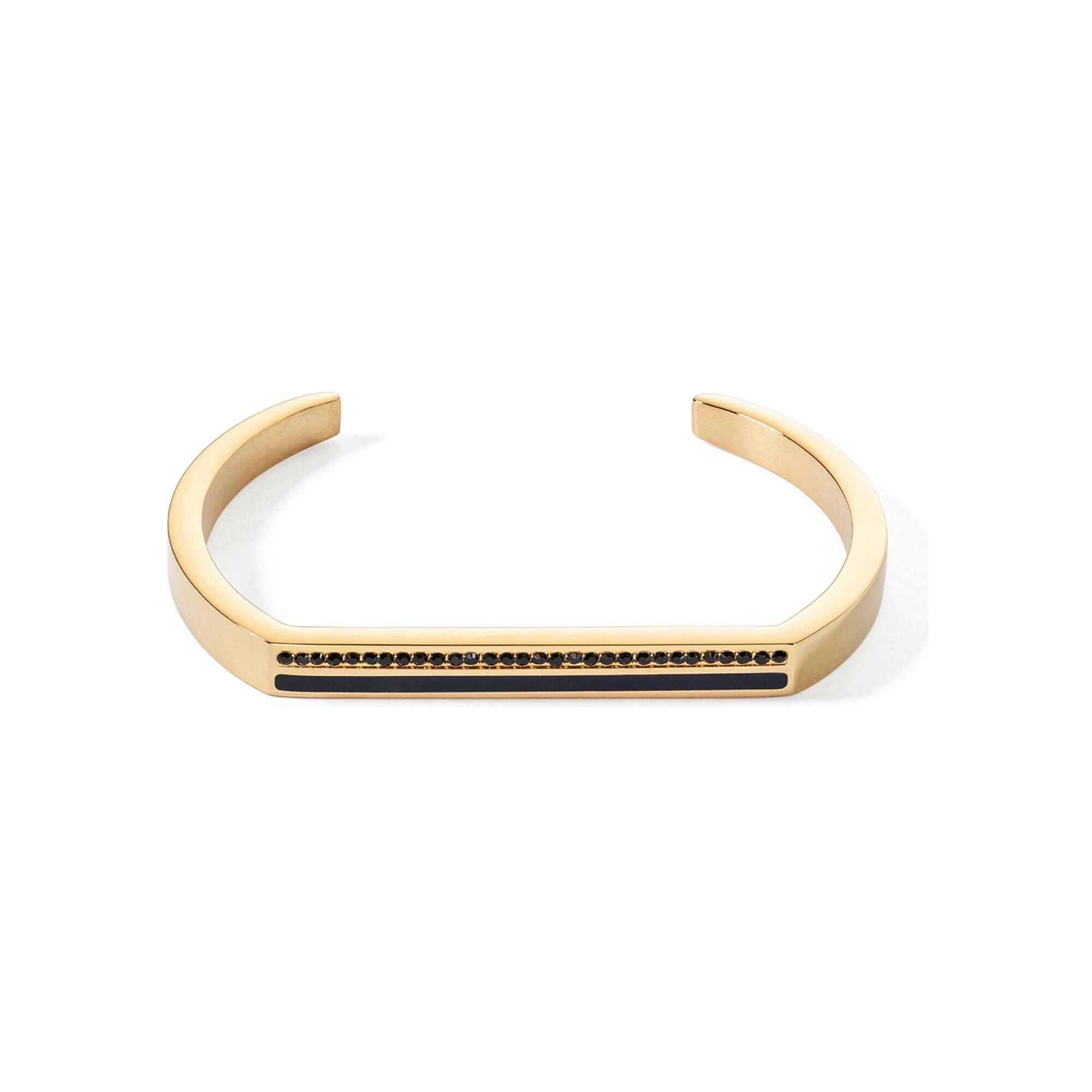 Bracelet Coeur de Lion Cuff Square Stripes en acier doré et cristaux, taille 16cm