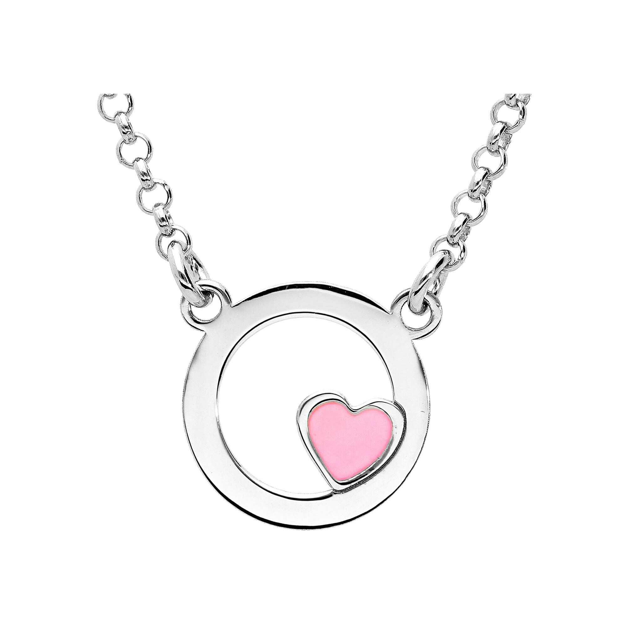Collier argent rhodié cercle avec coeur résine rose 35+5cm