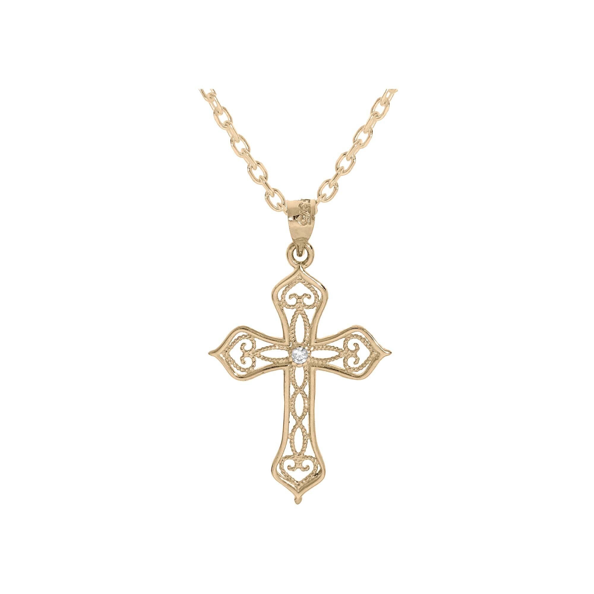 Collier plaqué or pendentif croix filigrane oxyde blanc 40+5cm